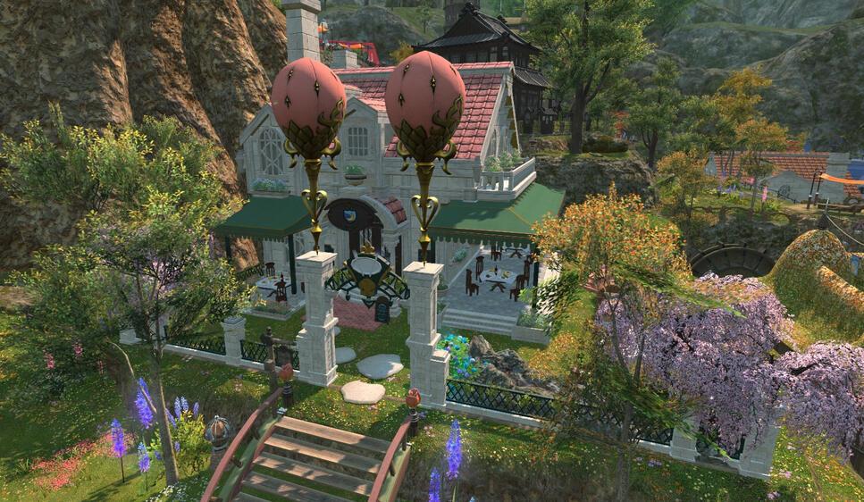 Looking for a respite in the middle of Thanalan? Enchantée's outdoor cafe offers a small outdoor eating space, suitable for a barbecue or a small tea party. The trees and awning perfectly cover the tables so your guests will never feel hot. Enchantée also offers service packages.Rental Space: 250,000 gil per hour