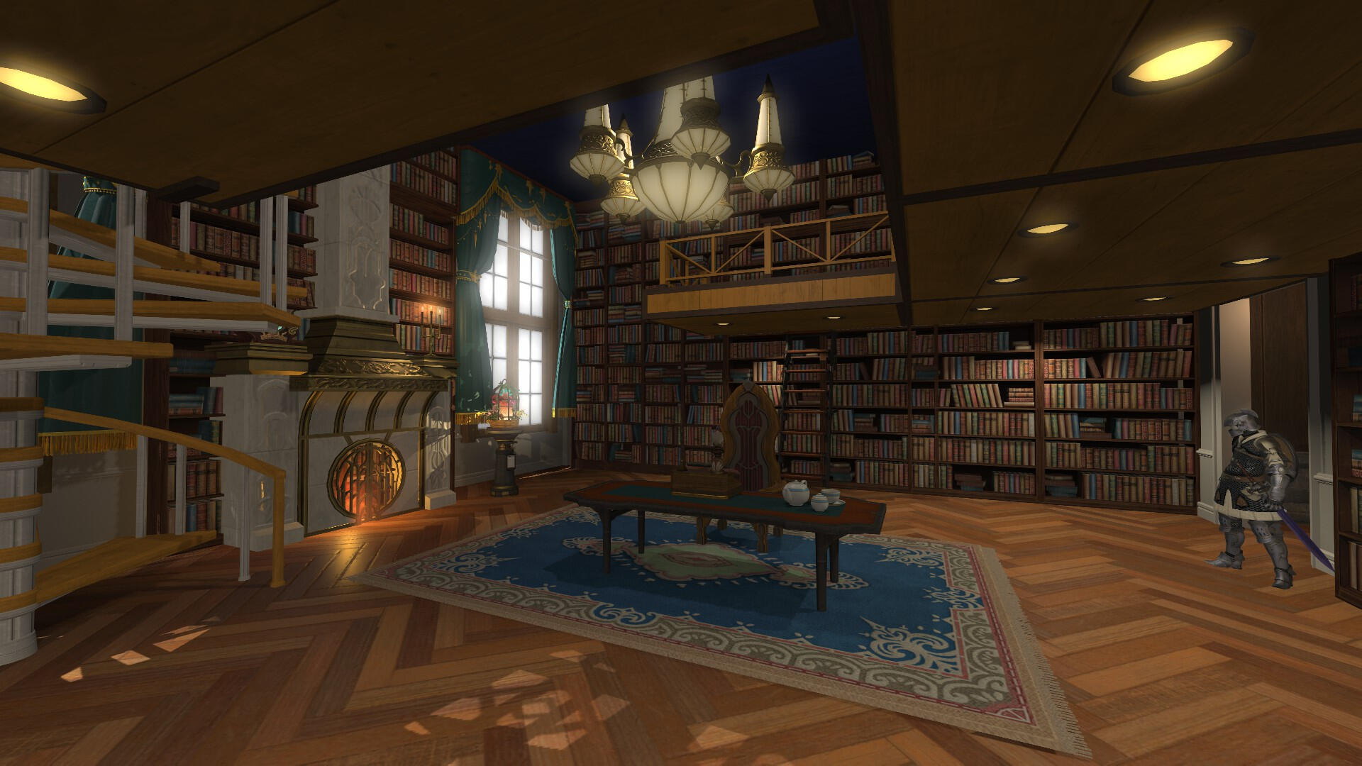 The ballroom is outfitted with a DJ booth, a servery corner and three tables for casual conversation and food. The stained glass and floor-to-ceiling moonlit doors accentuate against the marble flooring, creating the perfect atmosphere for a ballroom space and a venue for your next reception or party.Rental Cost: 500,000 gil per dayPlease note that colours of banners can be adjusted accordingly, but the overall set-up cannot change.To book your event, please submit a form on Discord.